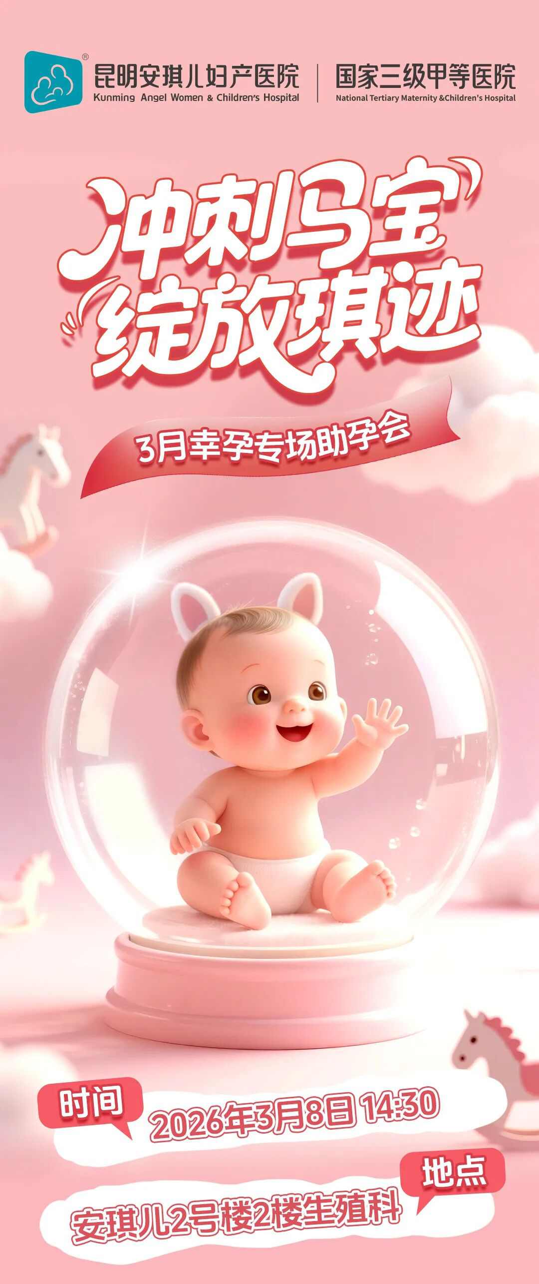 好孕,从一场温暖的相遇开始;每个期盼生命的家庭,都值得被悉心守护。为帮助更多家庭拥抱圆满,昆明安琪儿妇产医院生殖医学科『冲刺马宝·绽放琪迹』3月幸孕专场助孕会,将于2026年3月8日(周日)14:30温情启幕。点击下方图片,了解活动详情与预约方式。