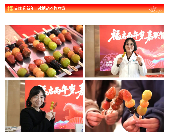 晶莹剔透的冰糖葫芦,以其甜蜜的滋味与“福禄”的吉祥寓意,为活动现场串起了鸿运,更添一份团圆红火的年节氛围。大家品尝着香甜,脸上洋溢着喜悦,一串串美味的冰糖葫芦不仅满足了味蕾,更温暖了人心。